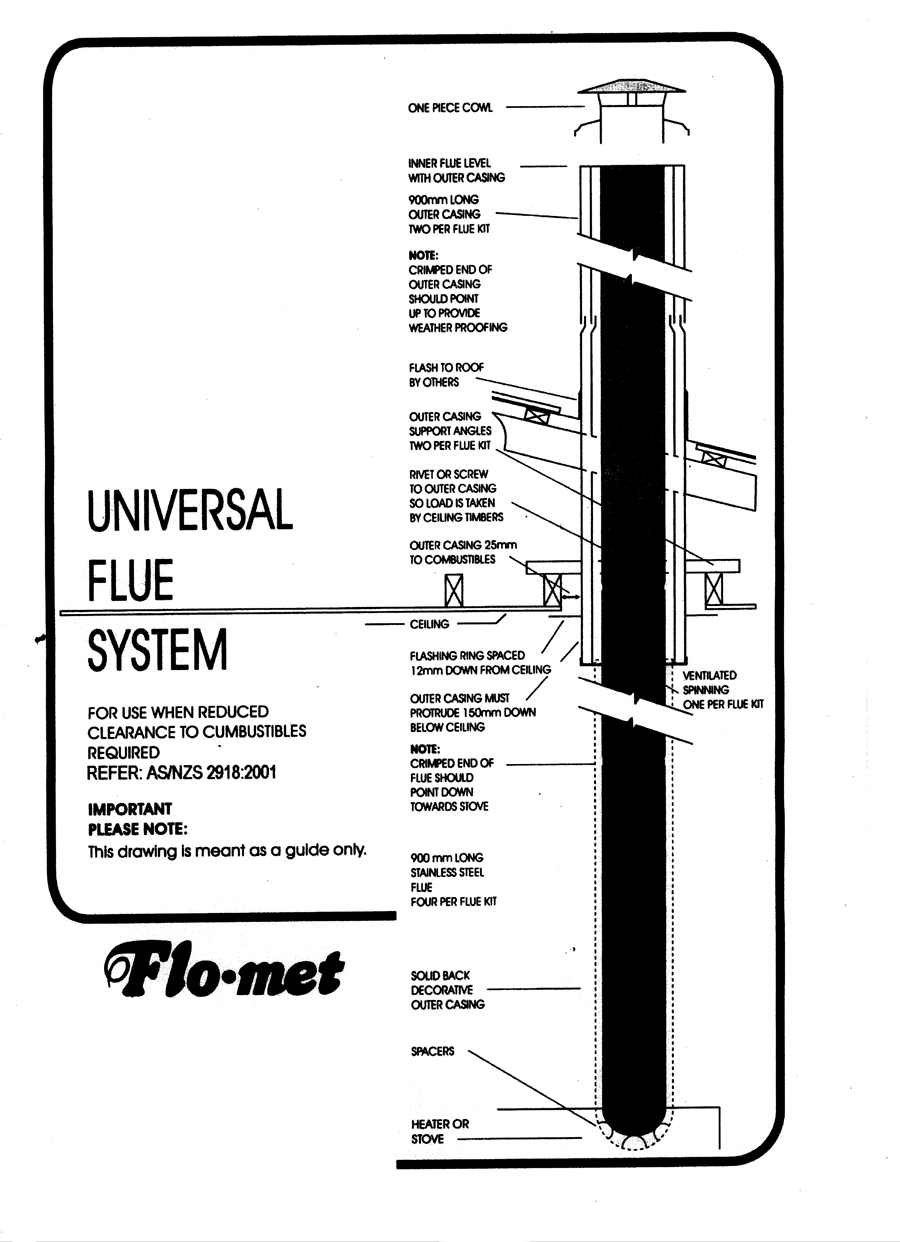Flue systems and flue parts for wood heaters are listed below. Wood heater flue kits all require stainless steel min 304 guage flues as an active flue but the outer flues can be galvanised or stainless flue if you prefer. All cowls are stainless steel.